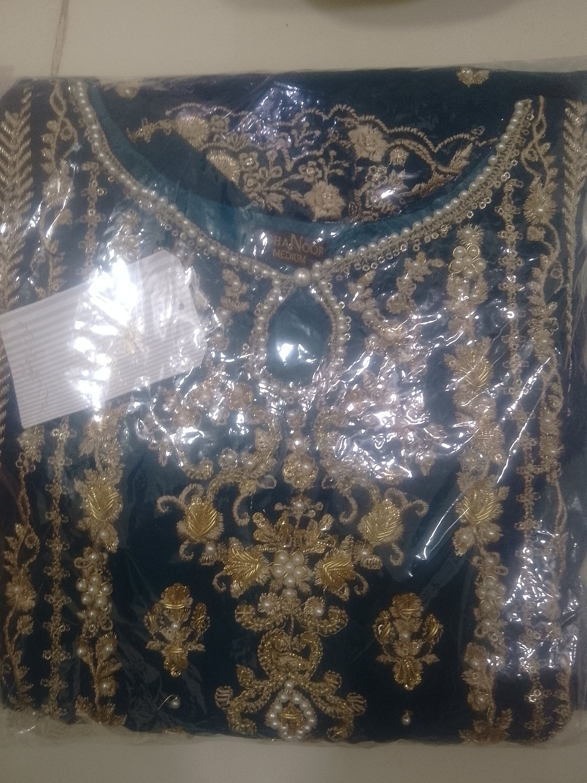 This elegant chiffon suit features detailed hand embroidery on the shirt and is complemented by a exquisitely designed dupatta.