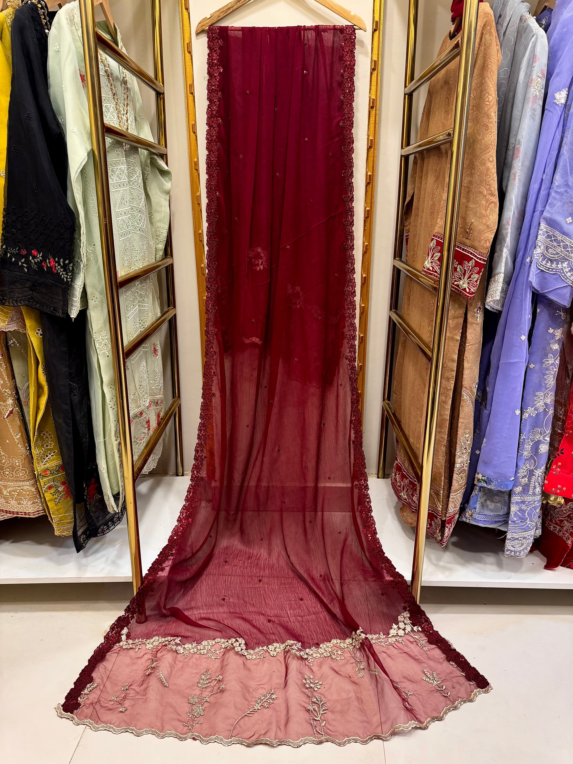 - Dupatta: Intricately embroidered chiffon dupatta completing the luxury look.
