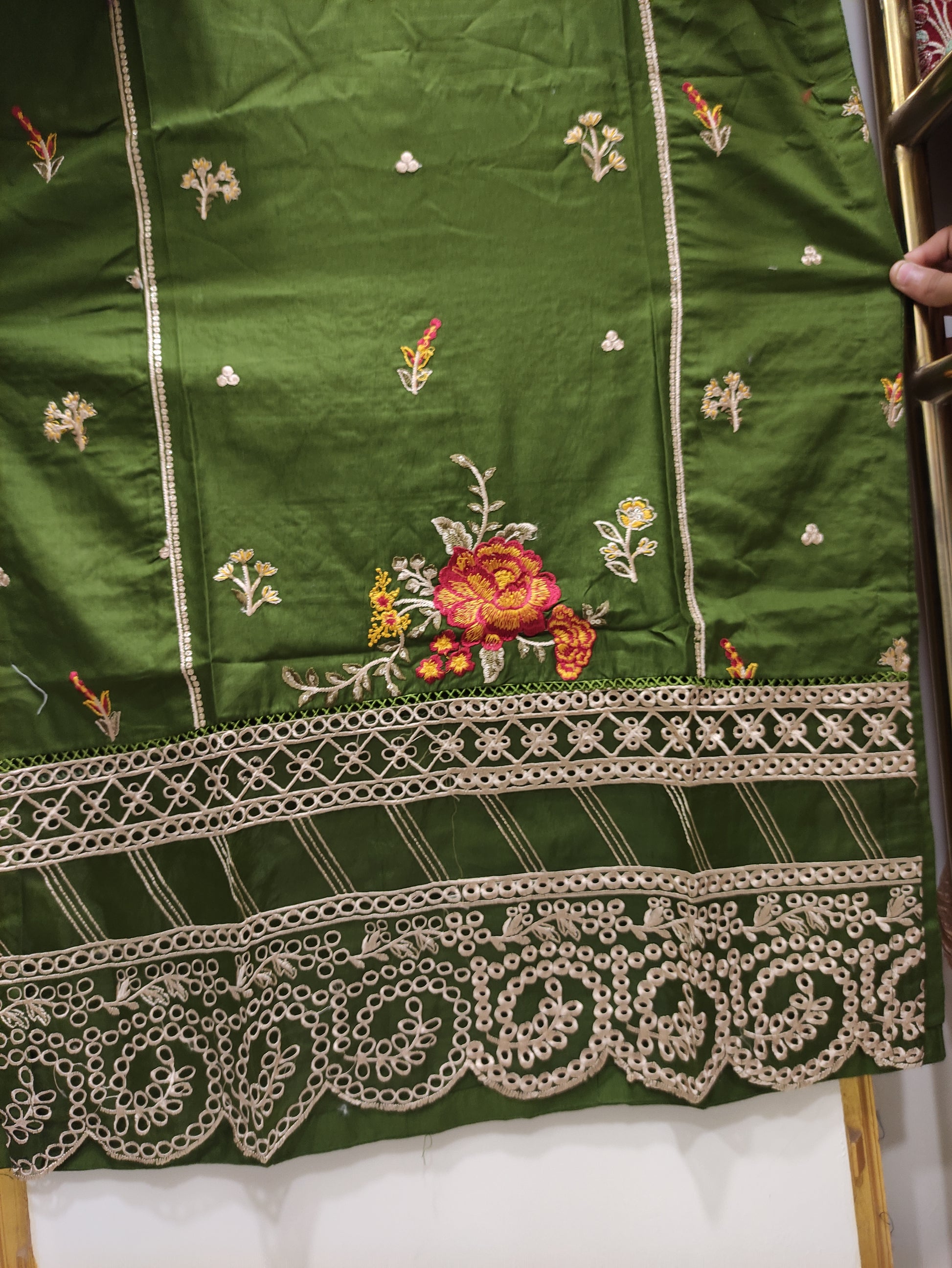 Hand wash cold or dry clean. Avoid heavy rubbing on embroidery.