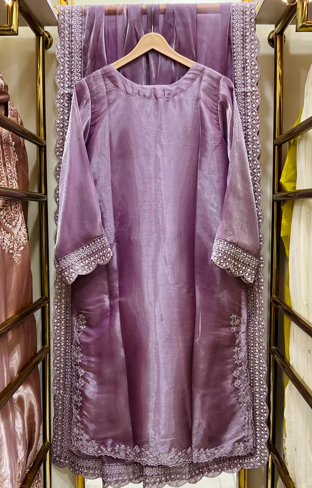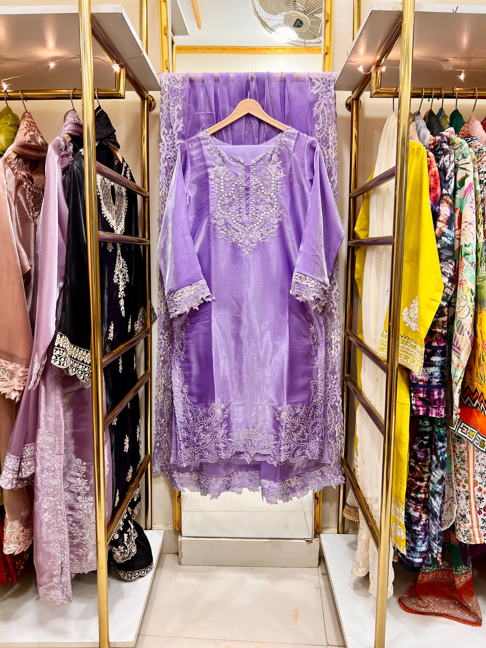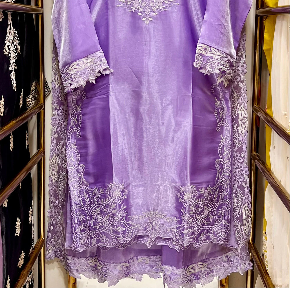 Step into luxury with our stunning Lavender Lava Silk 3 Pcs Embroidered Suit — a masterpiece crafted for women who appreciate timeless sophistication and fine artistry. Hand-embroidered with meticulous detail, this three-piece ensemble features premium lava silk that drapes beautifully and catches light with every movement. Perfect for formal gatherings, weddings, and upscale occasions, it delivers unmatched grace, elegance, and contemporary luxury that transcends trends.