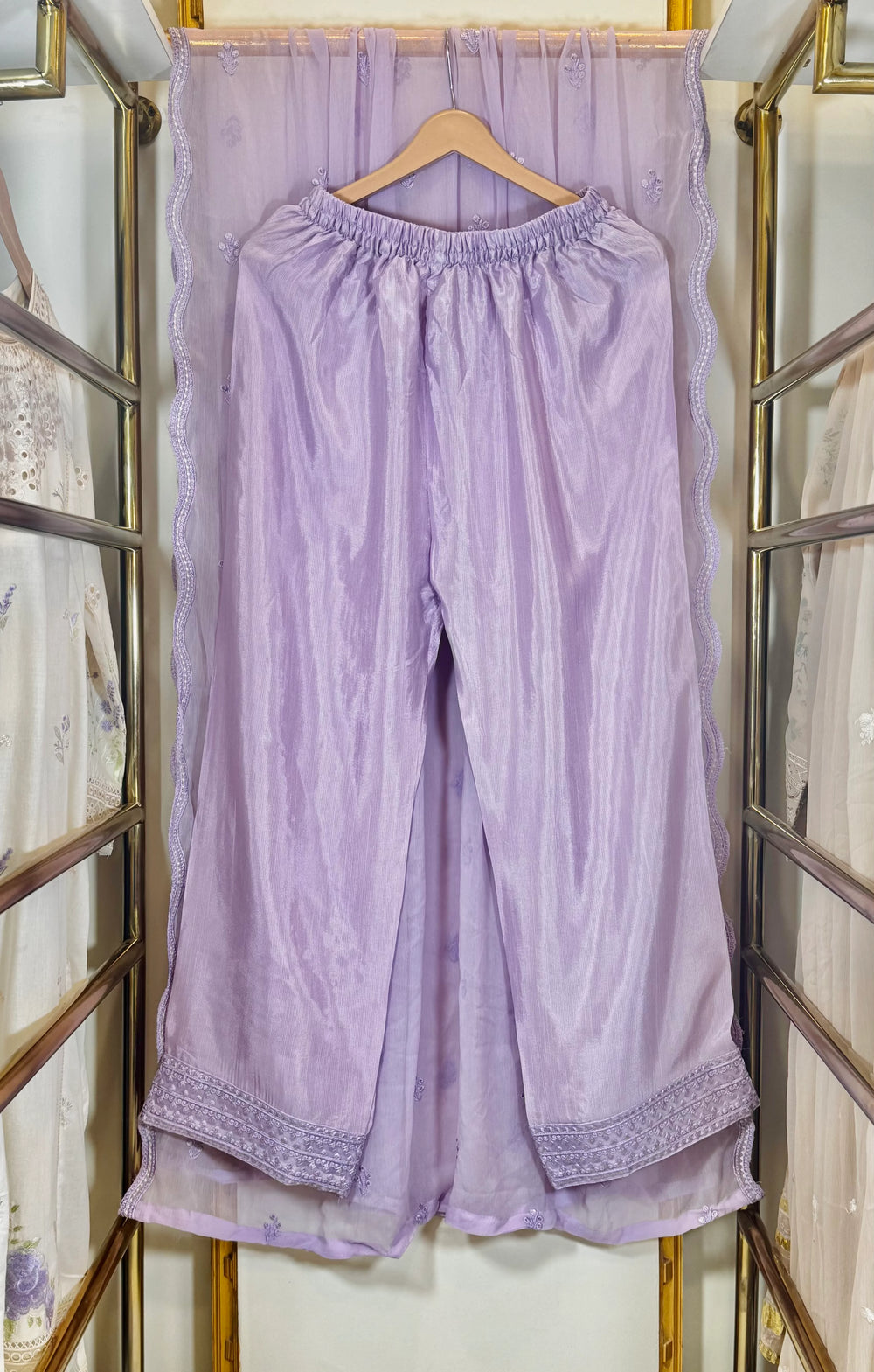 Designed as a three-piece ready-to-wear ensemble with tailored trousers and a finely finished embroidered dupatta, Lilac Whisper is perfect for spring/summer weddings, formal luncheons, and elegant evening gatherings where subtle luxury leaves a lasting impression.